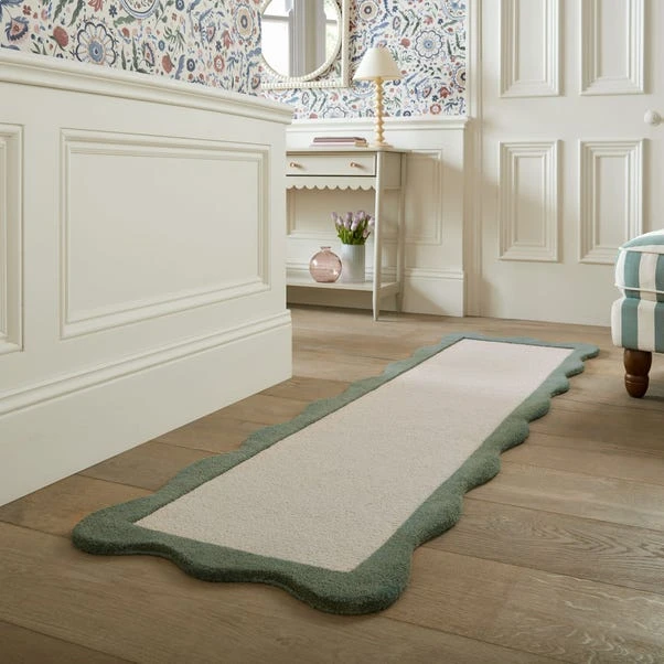 Are you looking for a runner to bring together a stylish living space? Then look no further than the Bonnie Scallop Border Wool Runner. Designed with a contrasting frame edge and beautifully finished with a hand carved scalloped trim – why be square? Bring some fun into your living space! Hand crafted from 100% Wool for natural insulation and quality softness. A Perfect addition to hallways and bedrooms.