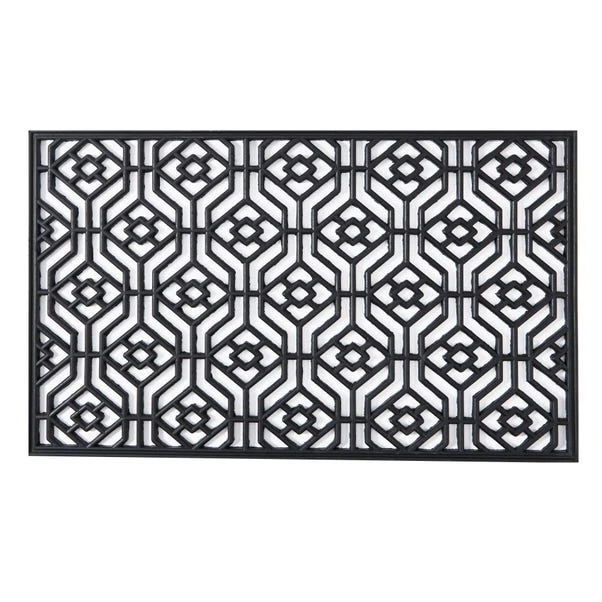 Made from 100% rubber, this geo rubber doormat features an elegant design fashioned in a plain black colourway and offers mould resistant qualities, perfect for outdoor uses.
