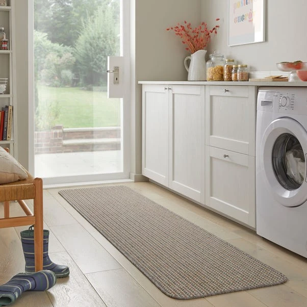 The Practi Dana Washable Runner is the perfect upgrade for a busy home. Made from 100% Polypropylene the durability of this doormat does not compromise the style. Woven with a bobbled stripe design to tuck into high traffic areas around the home. For any spills and messes, the doormat can be easily washed.