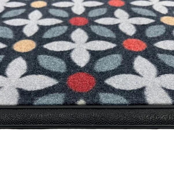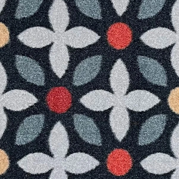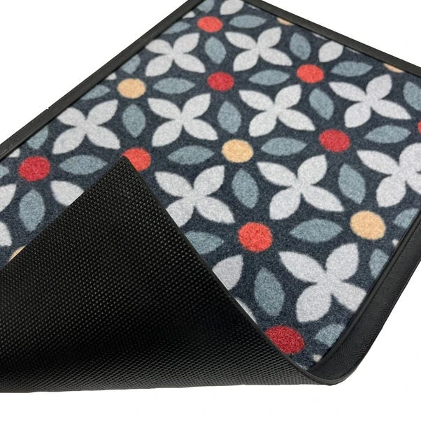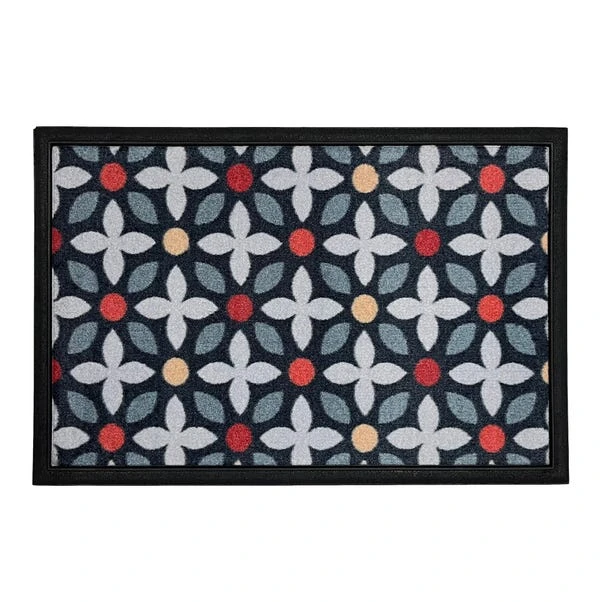 Scrapes the dirt and absorbs the moisture, this floral geometric doormat is ideal for any home. It can be placed inside or outside under shelter and the recycled nylon pile quickly absorbs excess moisture and dirt and helps prevent it from entering your home. The pile is also fade resistant to will stay looking newer for longer and the durable rubber base helps to keep the mat in place.